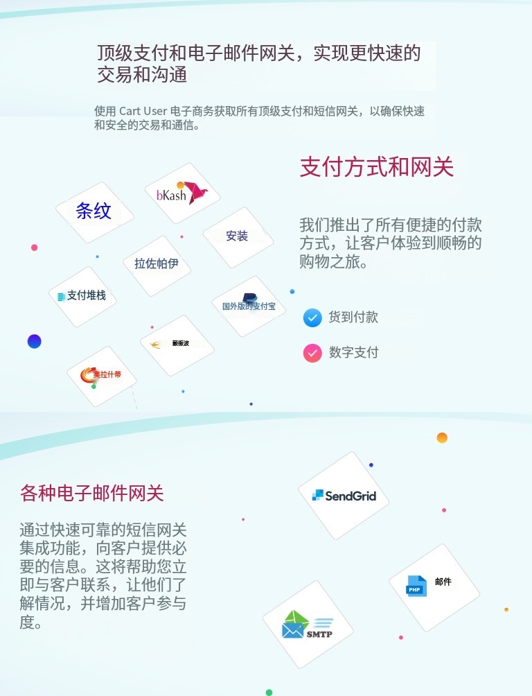 - 多样化的支付网关:支持所有流行的支付方式,为您的客户提供灵活性和便利性。